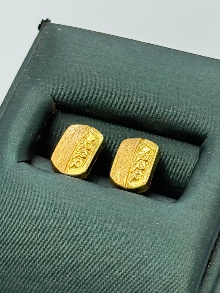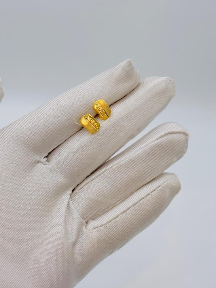 Elegant and lightweight, this 18K gold earring pair weighs only 0.43 grams. With a unique and intricate design, it blends simplicity with luxury—perfect for everyday elegance or a subtle golden touch on special occasions.