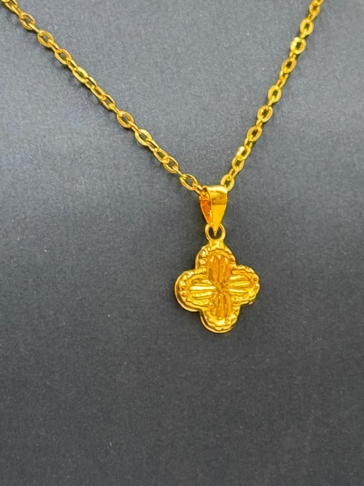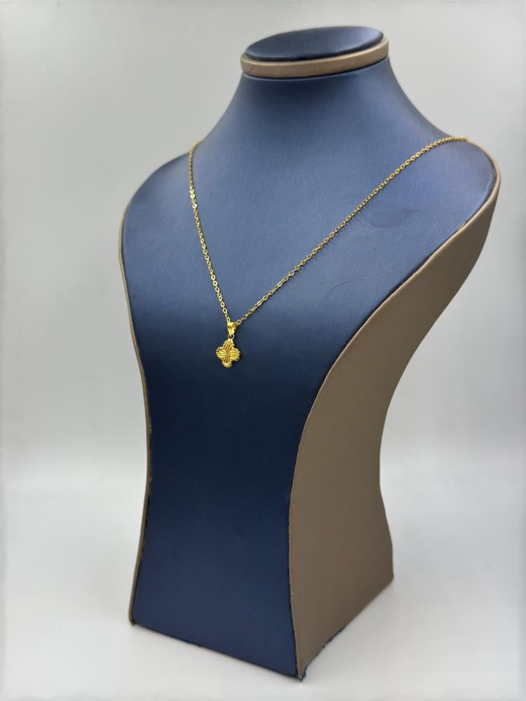 This delicate 18k gold necklace features a simple and elegant design. The chain is designed in a slim and polished shape for a touch of sophistication, and measures 18 inches (45 cm) in length to sit perfectly around the neck. A delicate flower pendant hangs from it, engraved with high precision, adding a captivating beauty that reflects the meticulous craftsmanship. With a total weight of 0.94 grams, this necklace is lightweight and comfortable for everyday wear, making it a classic feminine piece suitable for all occasions. Its balanced design combines luxury with simplicity, making it a distinctive addition to any jewelry collection.