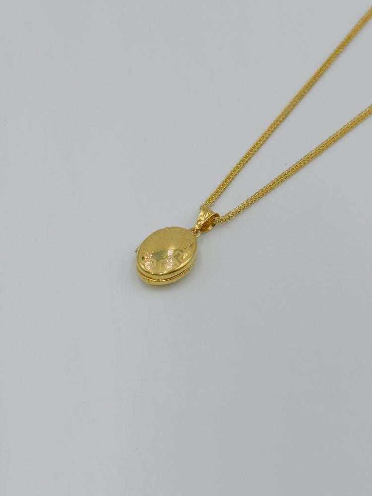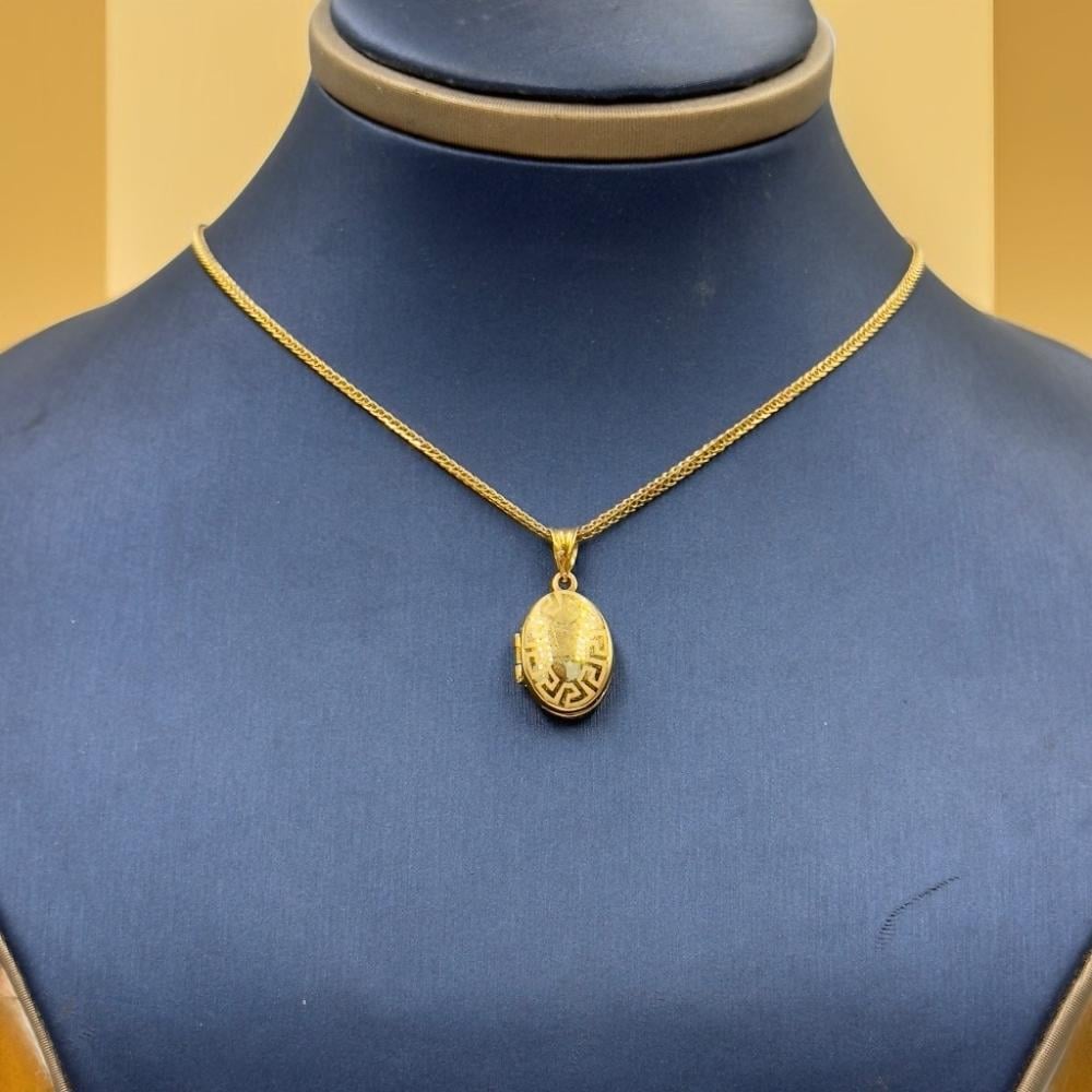 Elegant 18K gold necklace with a unique locket pendant that allows you to keep a small photo of your loved one inside. Weighing 3.26 grams with a chain length of 18 inches (44 cm), this necklace is the perfect blend of elegance and emotion.