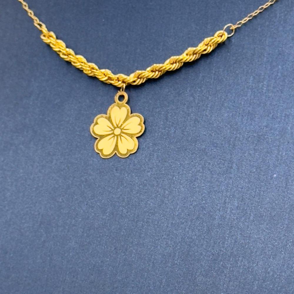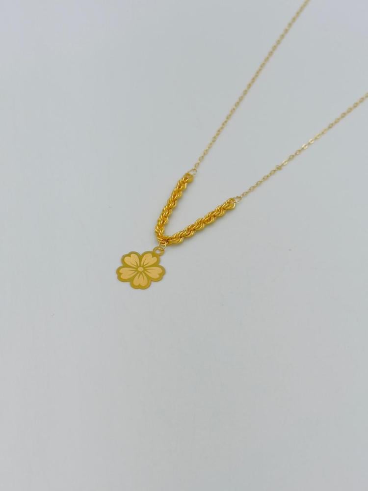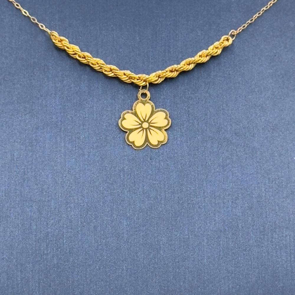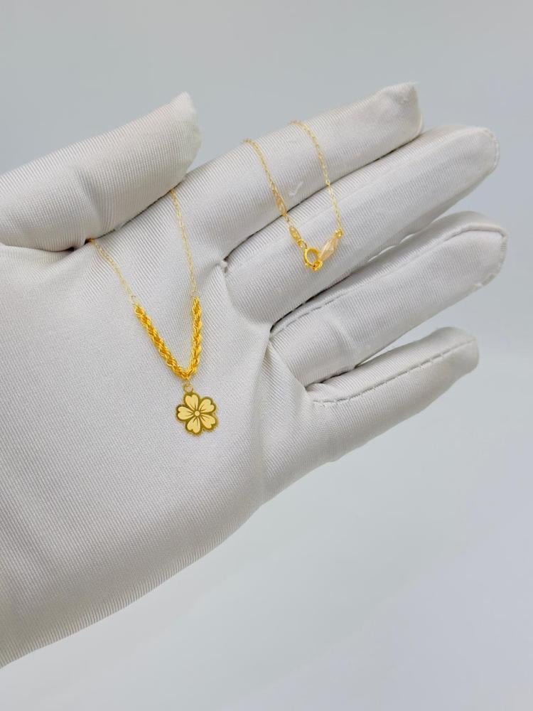 Description:Elegant rose-shaped necklace crafted from 21K gold, weighing 1.07g with a chain length of 16 inches (40 cm). A delicate design that combines simplicity and luxury, making it perfect for daily wear or special occasions.