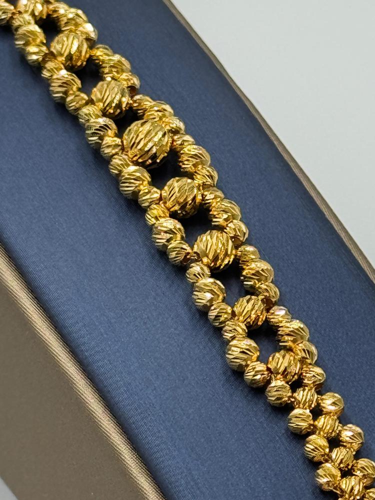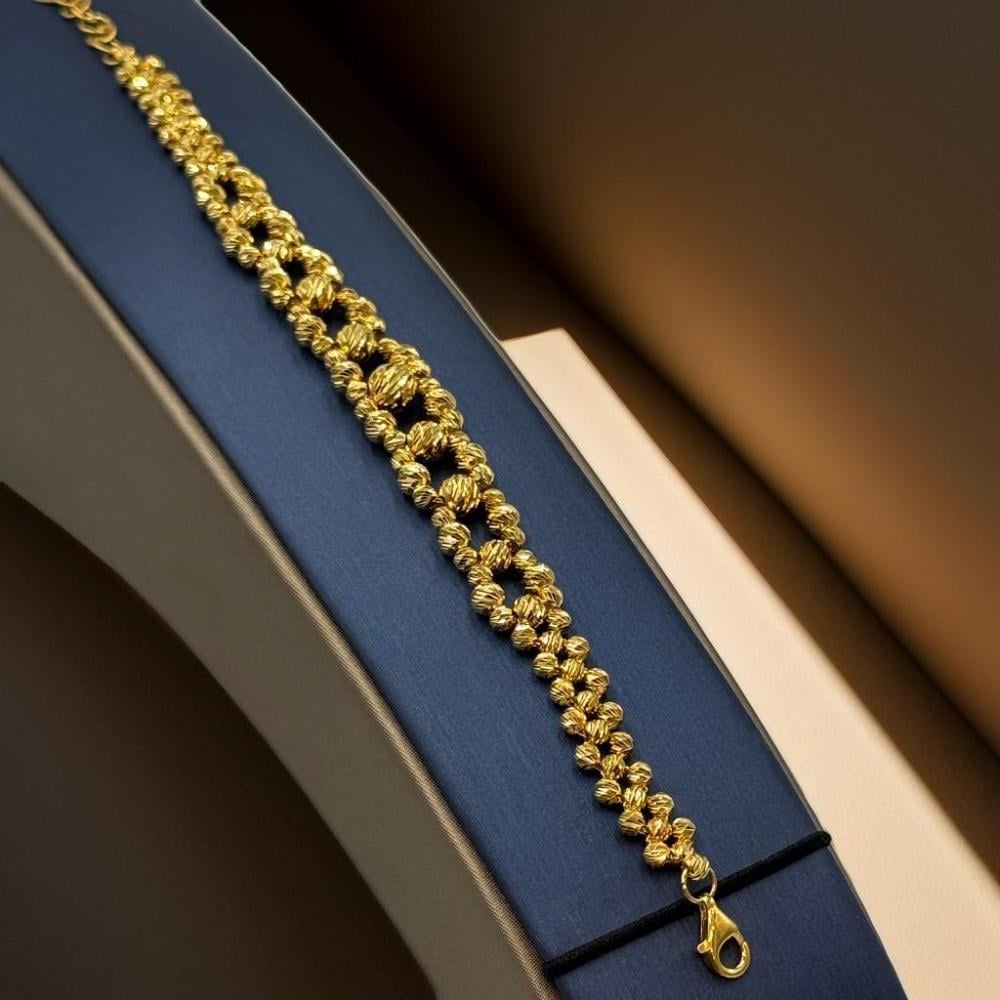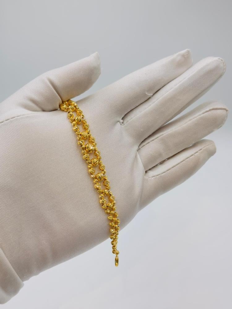 🔹 Product Description: A bold and elegant 21K gold bracelet with intricate, textured links that create a dazzling shimmer. Weighing 9.99 grams and sized at 7.5 inches (19 cm), it's a statement piece that speaks of tradition and luxury—perfect for every occasion.