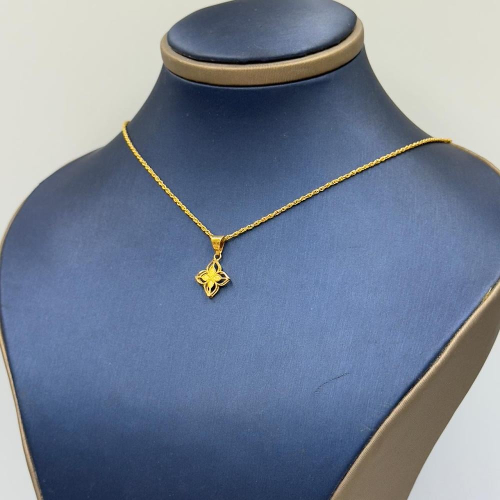 Elevate your style with this elegant Roberto Queen-inspired necklace. Crafted from 21K gold, it combines sophistication and simplicity in every detail. The necklace features a lightweight design of 1.37 grams with a 18-inch / 45 cm chain, perfect for both daily wear and special occasions.