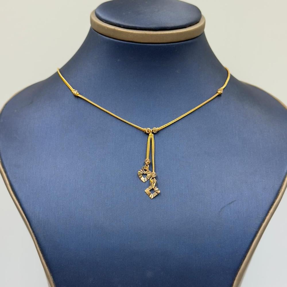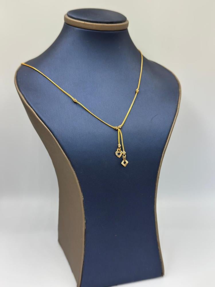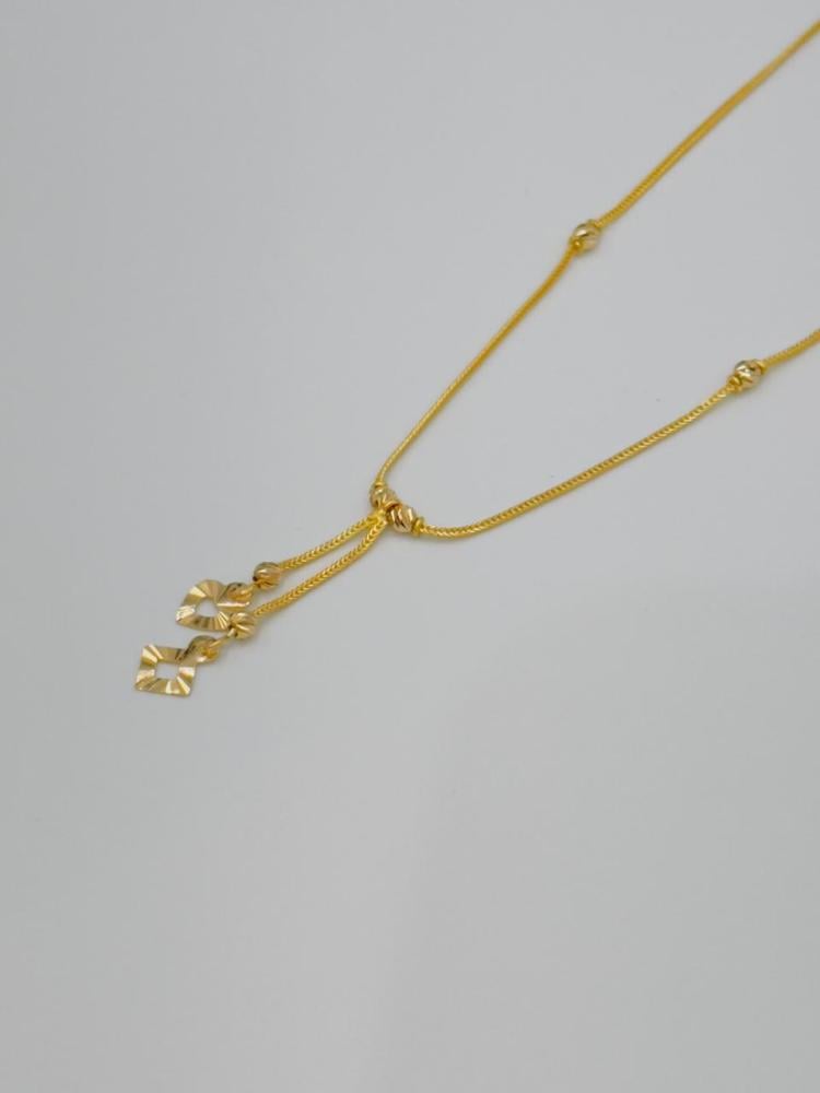 ✨ Product Description: A charming 22K gold necklace featuring a delicate double pendant in heart and diamond shapes, beautifully accented with scattered gold beads. This refined design captures femininity, love, and elegance — a perfect balance of modern style and classic golden allure. A timeless piece that adds a graceful sparkle to every look.