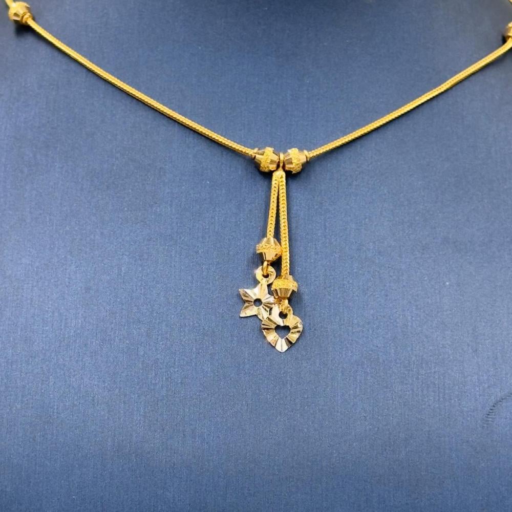 ✨ Product Description: A beautiful 22K gold necklace featuring a delicate heart and star pendant accented with elegant gold beads. This charming design symbolizes love and brilliance, adding a touch of femininity and sophistication to your look. Crafted with precision to reflect timeless elegance and authentic golden luxury.