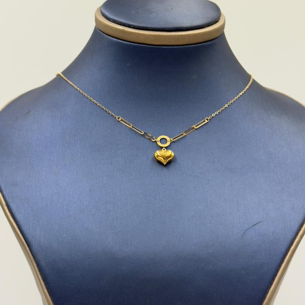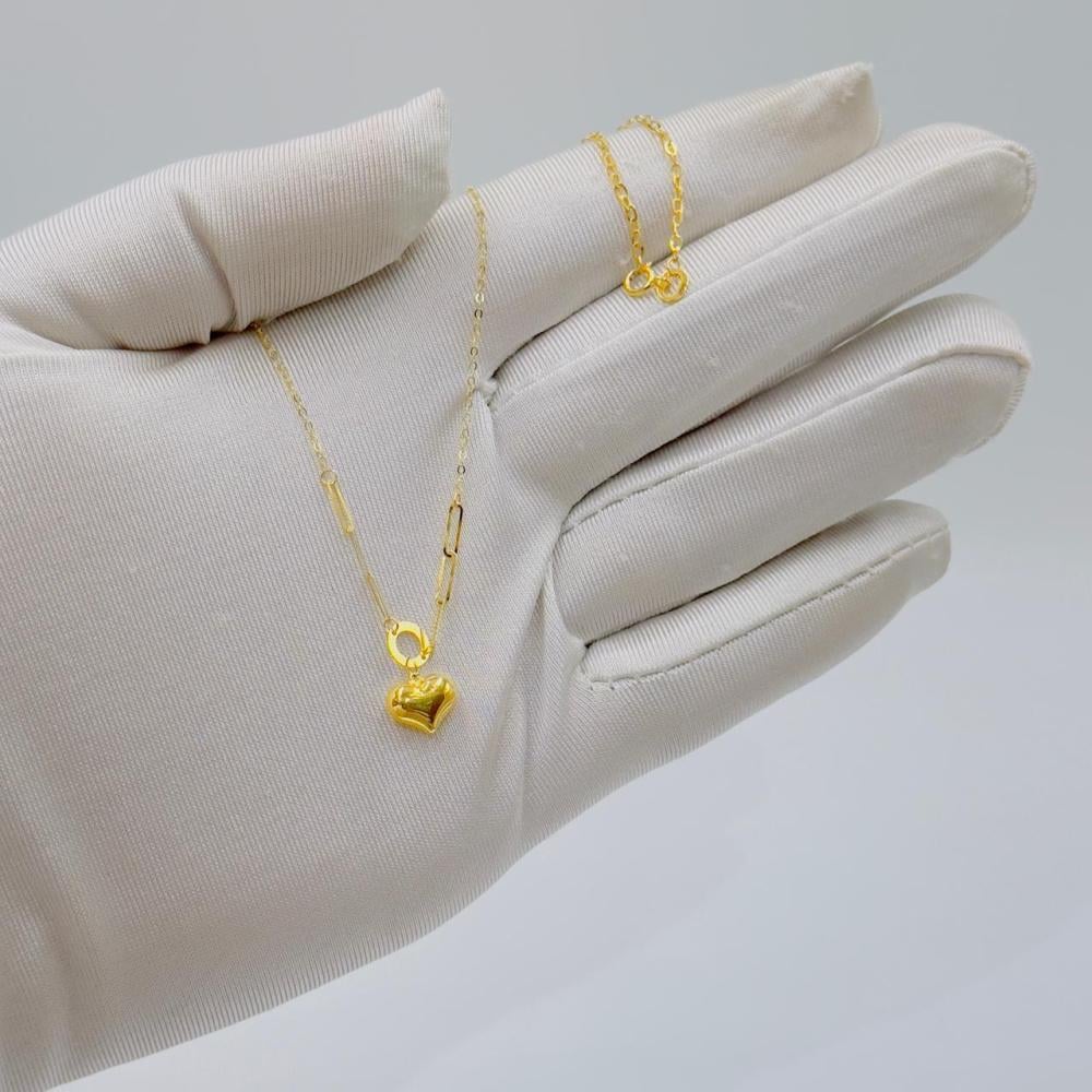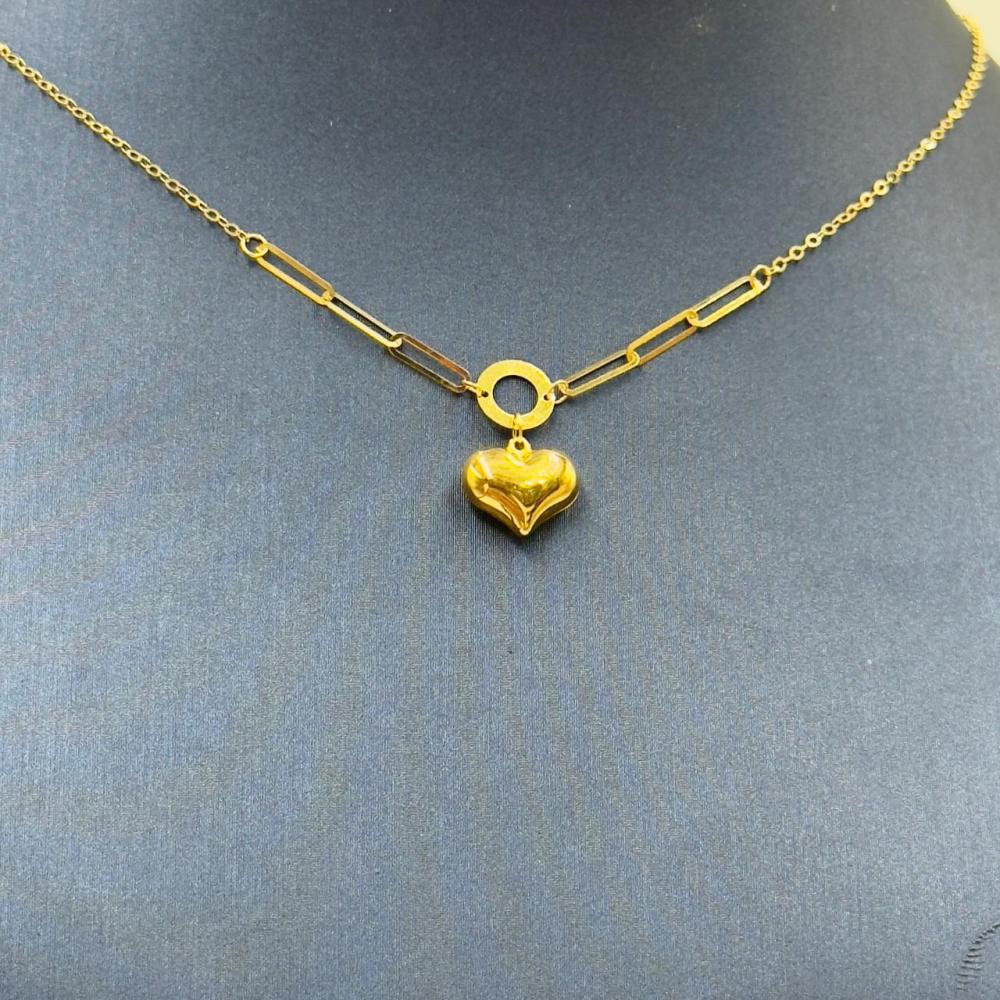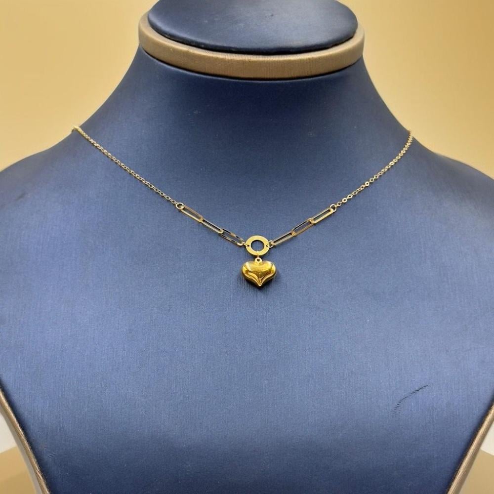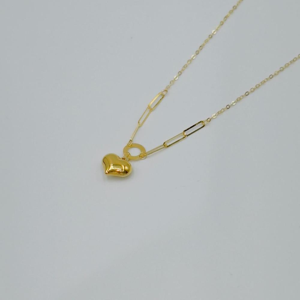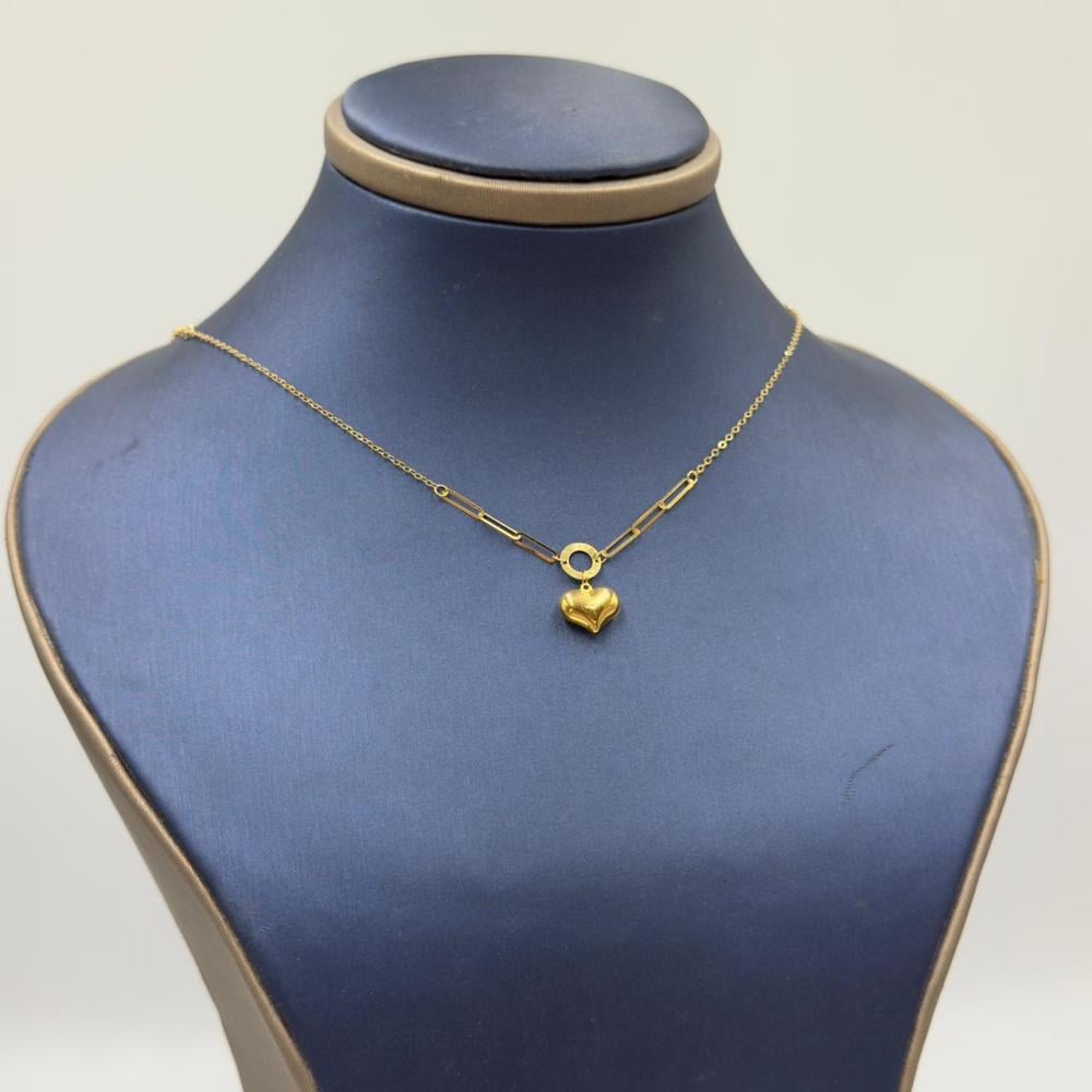 Description: An elegant 18K gold necklace featuring a heart centerpiece accented with paper clip (link) chains on both sides — a perfect blend of romance and modern elegance.