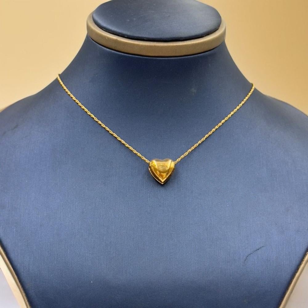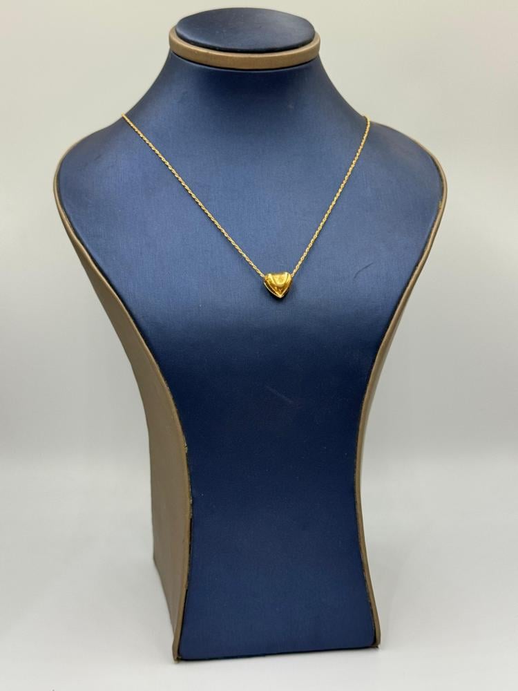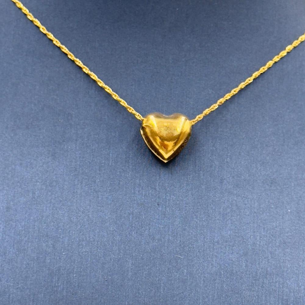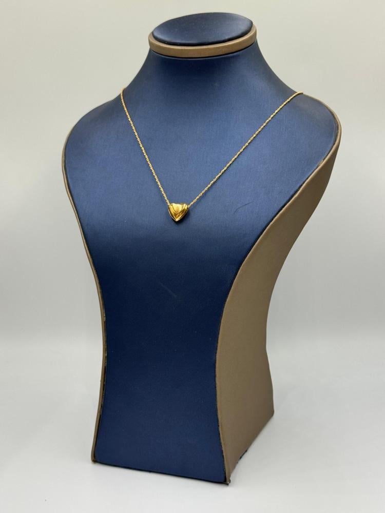 Elegant and luxurious 18K gold necklace with a shiny vertical heart pendant, symbolizing love and sophistication. Available in three pendant sizes to suit your style: