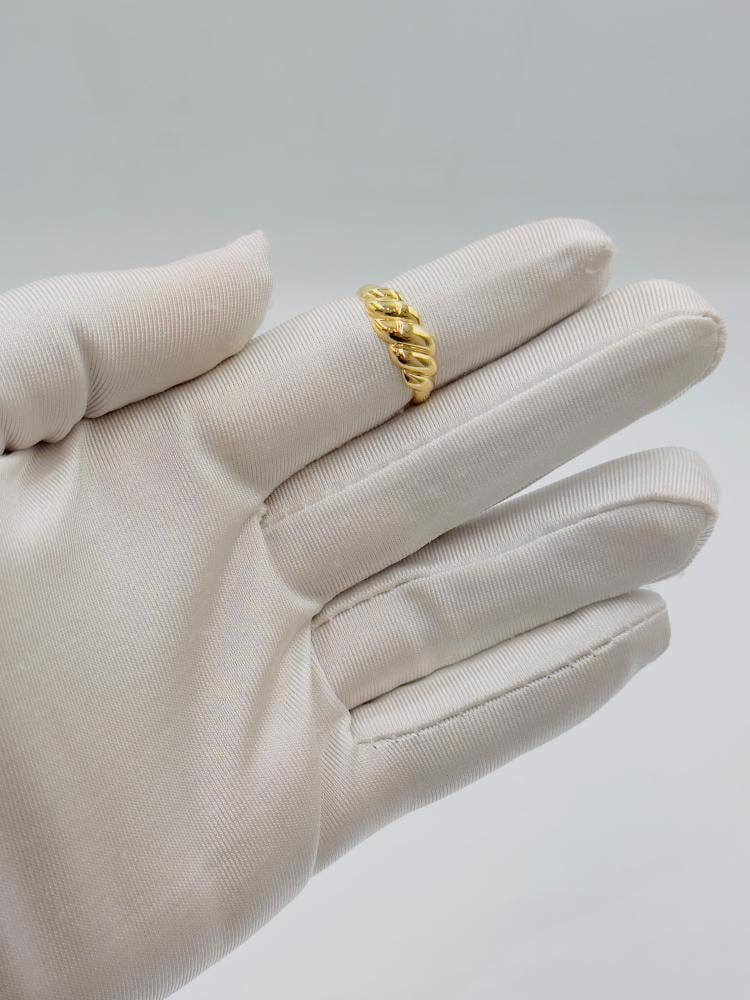 Elevate your look with this elegant Bottega-inspired gold ring, crafted from 18K pure gold and weighing 1.55 grams. Featuring a sleek, twisted rope design, this ring reflects the refined and modern style of Bottega Veneta, making it a perfect everyday accessory or a chic touch for special occasions.
