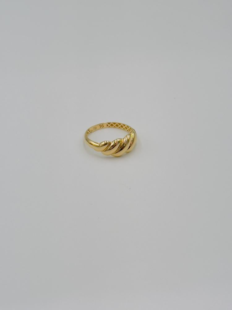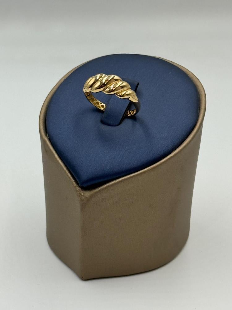 - Design: Twisted rope-style ring with a smooth, polished finish