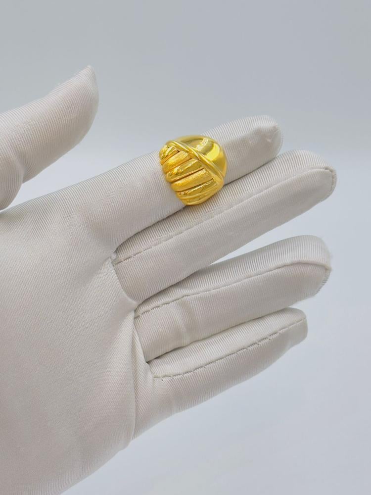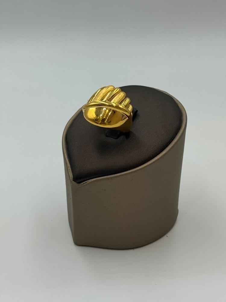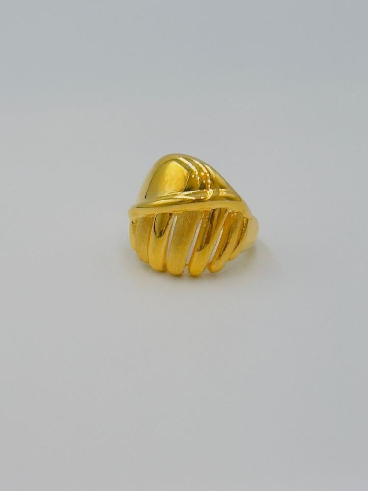 Elevate your style with this luxurious 21K yellow gold ring, crafted with precision to reflect both elegance and femininity. Featuring polished details and a graceful design, this ring is perfect for special occasions or as a timeless gift. Its medium weight offers a balanced presence on the hand, and it's available in various sizes for the perfect fit.
