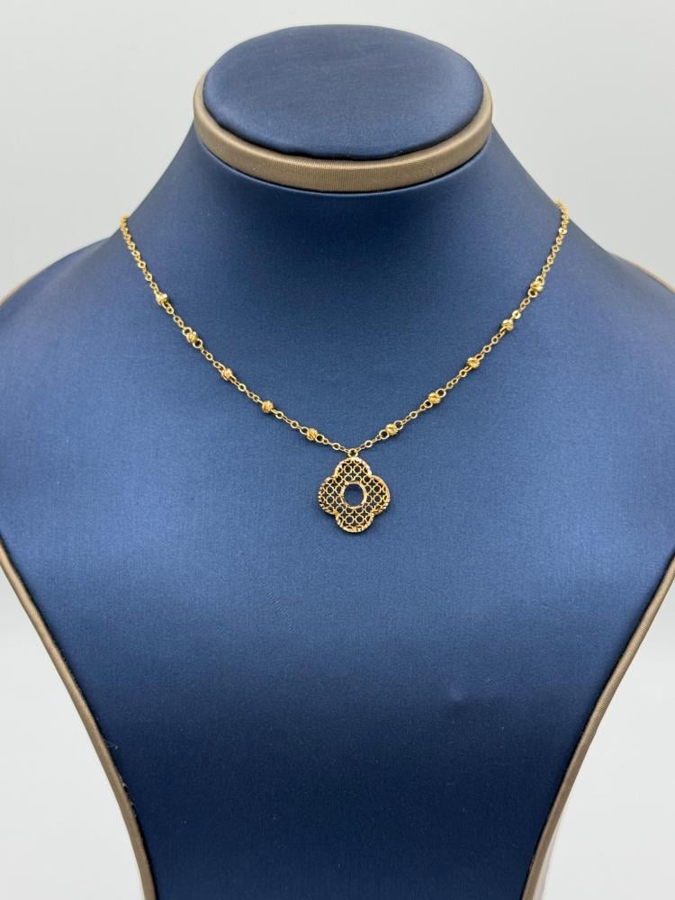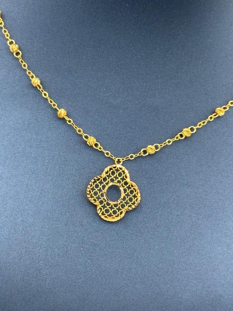Shine with a soft, feminine touch wearing this 21K gold necklace featuring an elegant rose design — a symbol of beauty and grace.