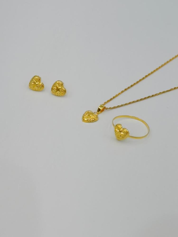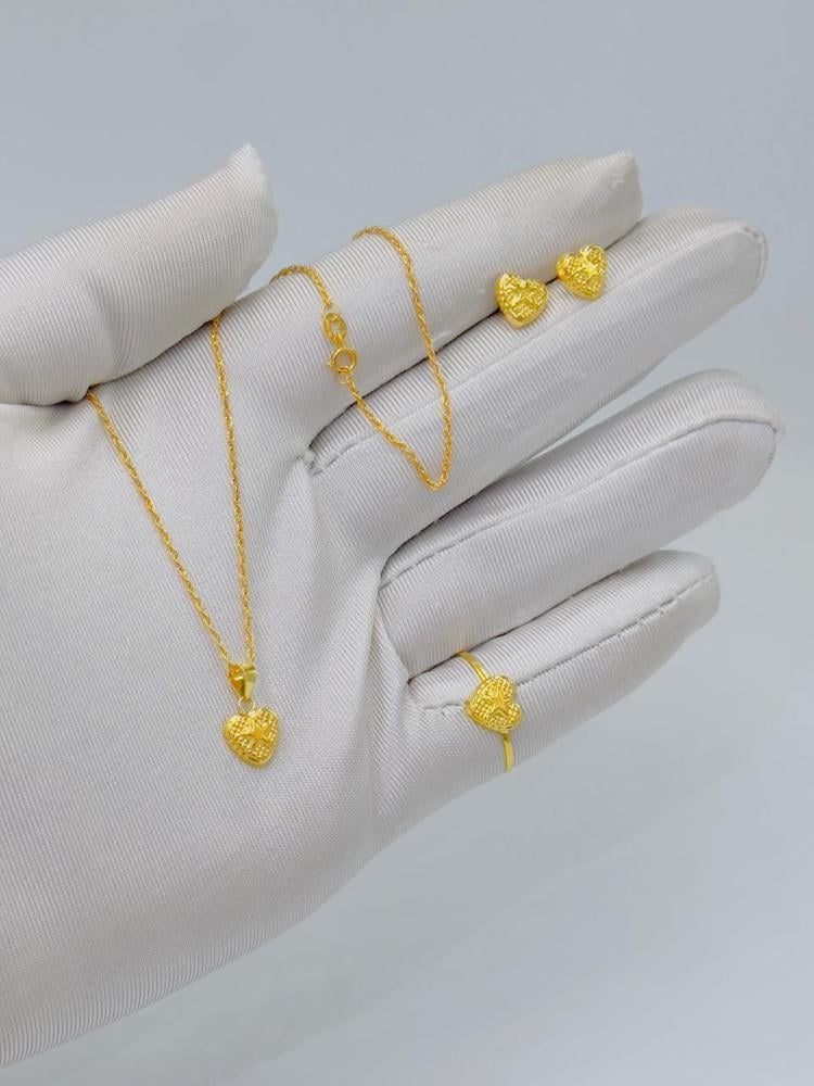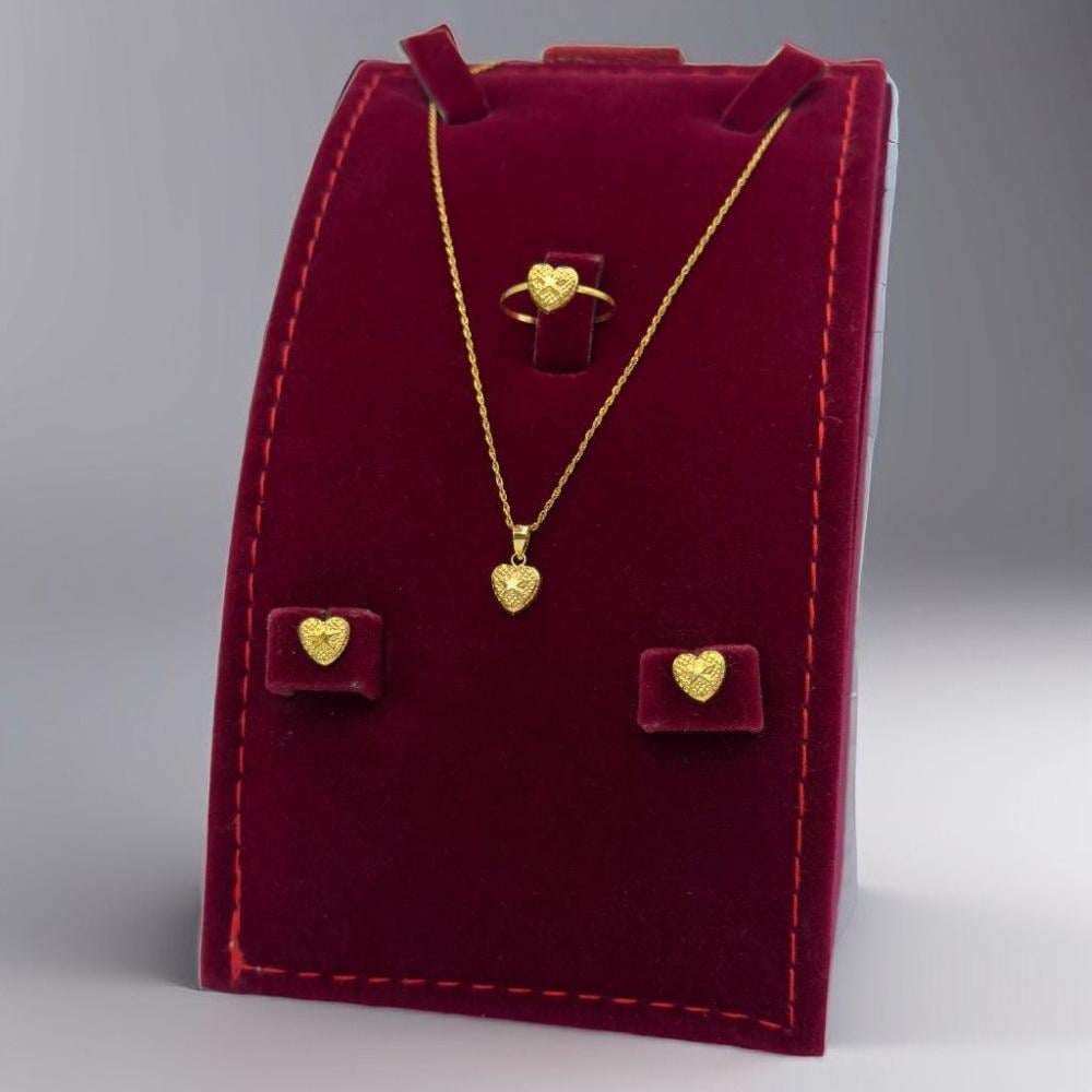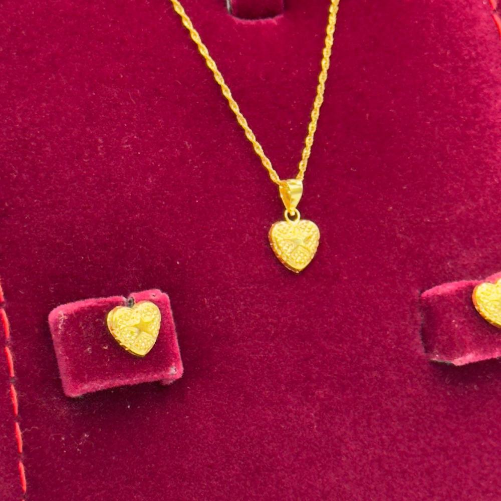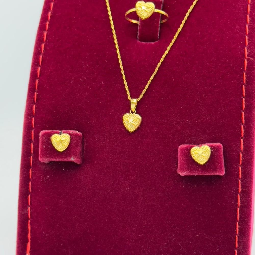 Product Description: An elegant 18K gold set featuring a delicate heart and an engraved star at the center of the chain. Lightweight and smooth on the neckline, this piece adds a touch of romance and sophistication, perfect for daily wear or special occasions.