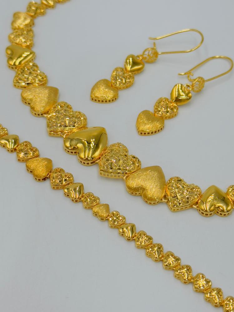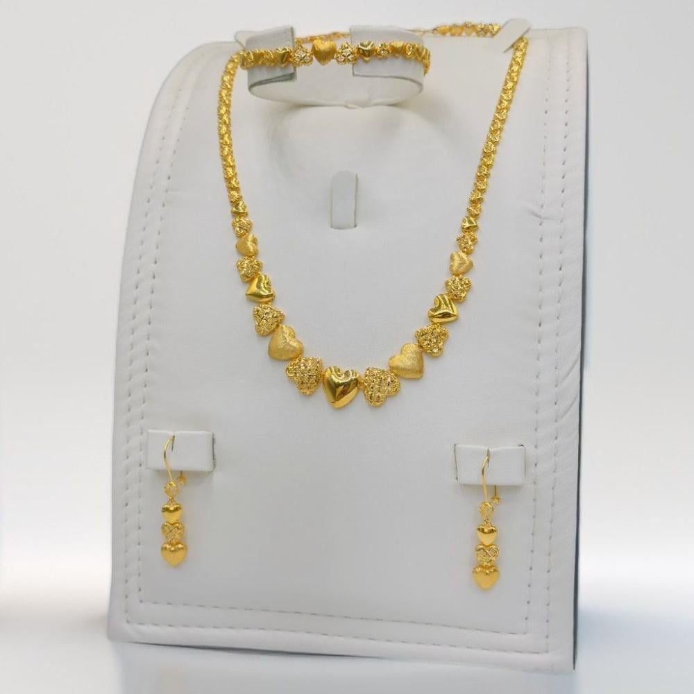 📖 Description: A 21K gold jewelry set featuring an elegant design of linked hearts symbolizing love and unity ♥️.