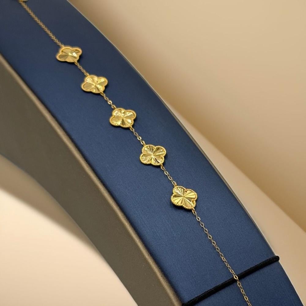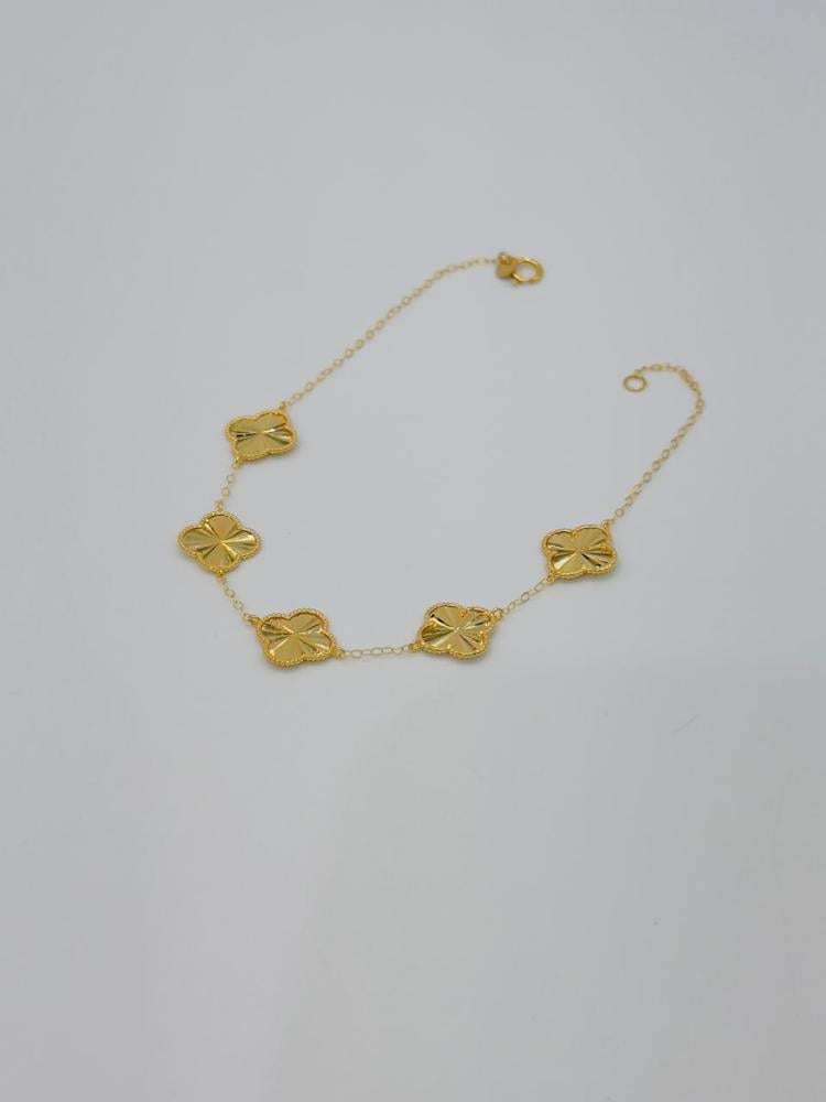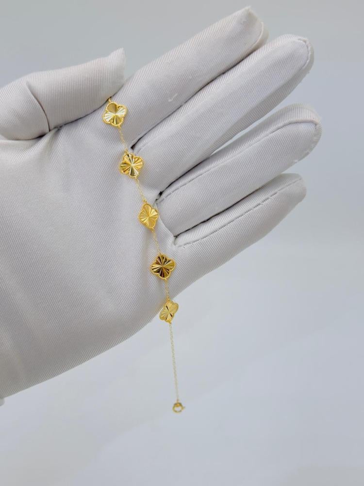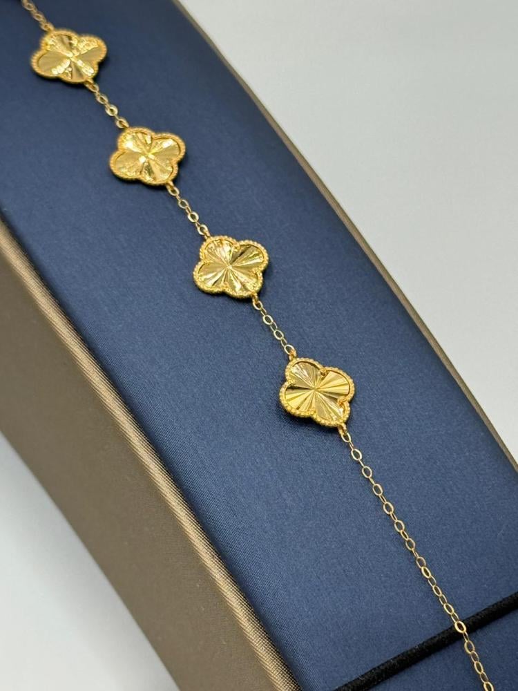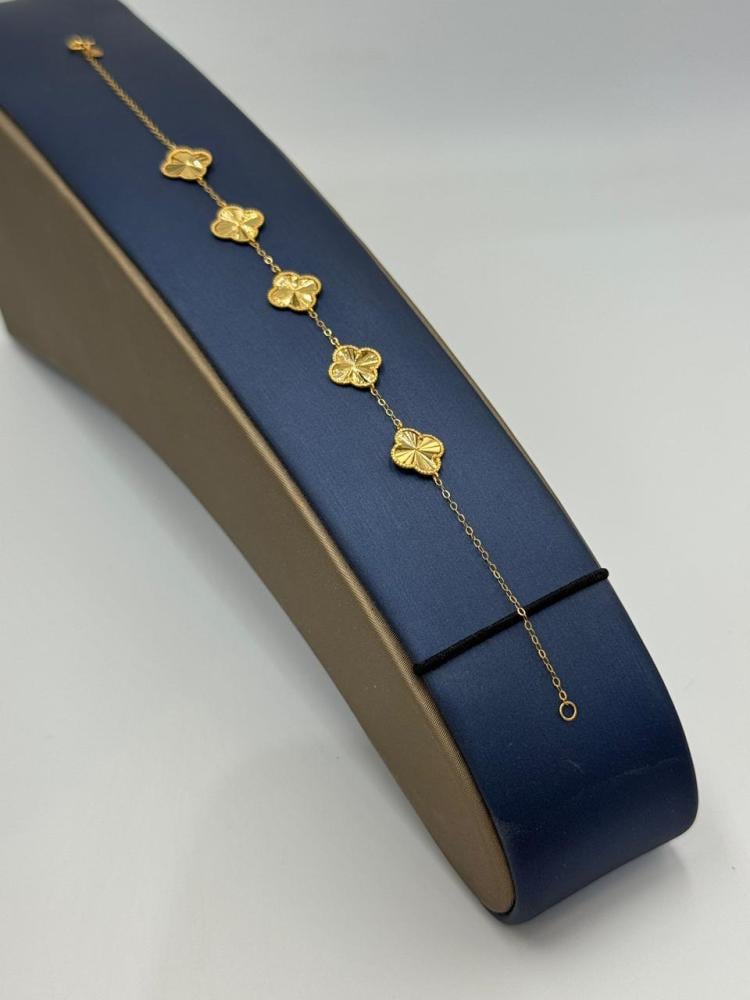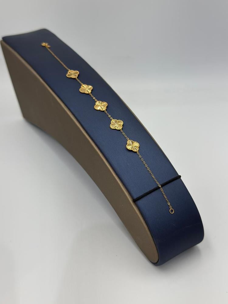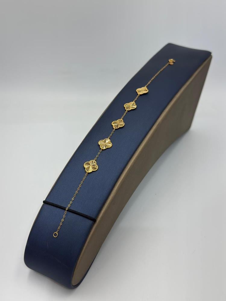 Description: Shine with elegance with this Vancliff bracelet crafted from 21K gold, featuring five iconic Vancliff logo pieces. A perfect piece to add a luxurious and modern touch to your daily look or special occasions.