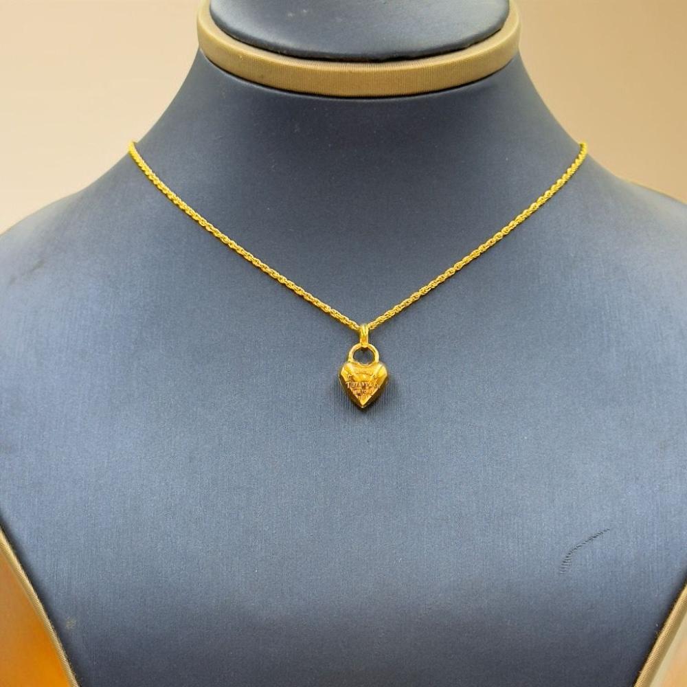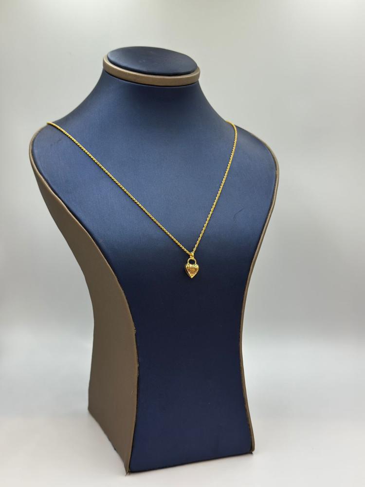 Add a refined touch to your look with this elegant 18K gold necklace, featuring a delicate pendant that blends simplicity with sophistication. Its lightweight design makes it perfect for everyday wear, while its golden shine adds a luxurious feel for special occasions. Available in two lengths to suit your style: